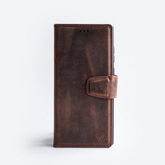 Wachikopa Genuine Leather Magic Book Case 2 in 1 for Samsung S22 Brown