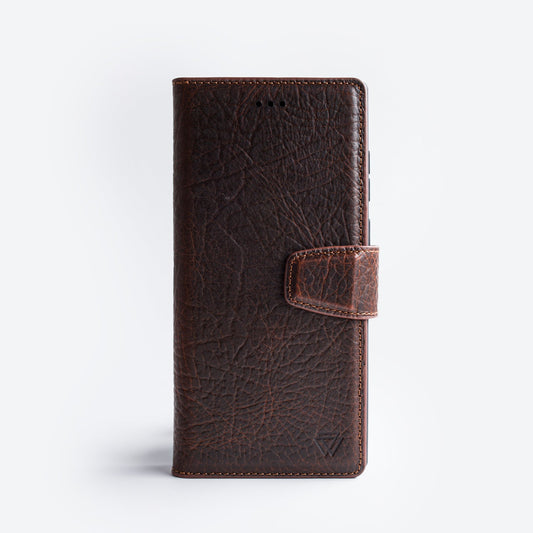 Wachikopa Genuine Leather Classic Bookcase for Samsung Galaxy S22 Ultra Brown